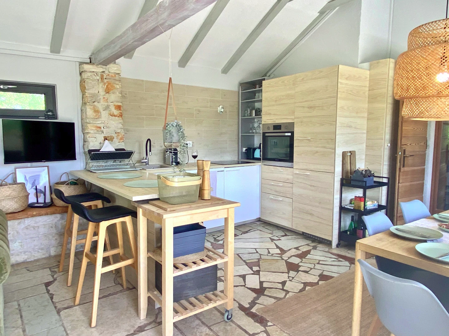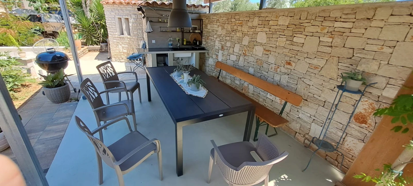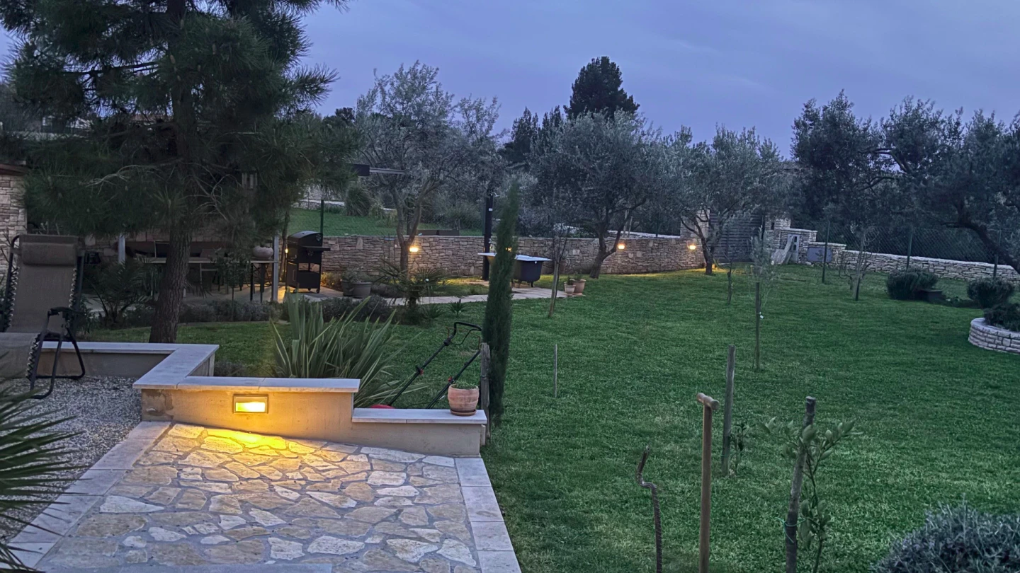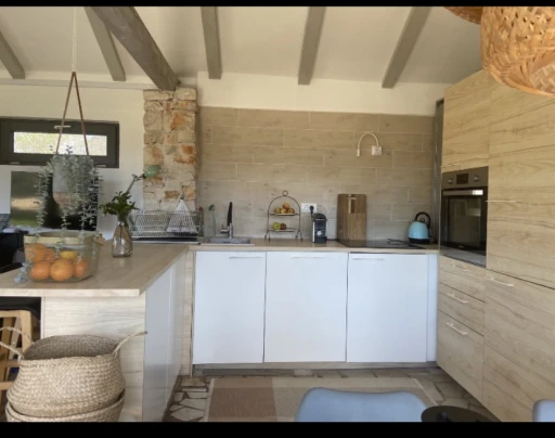 Nur 400 Meter vom Strand entfernt, eingebettet in einen kleinen Olivenhain, bietet das Haus den perfekten Rückzugsort für einen erholsamen Urlaub. Neben einem komplett umzäunten Garten mit Grill, Sitzgelegenheiten und Sonnenliegen erwartet Sie ein modernes und geschmackvoll eingerichtetes Interieur. Die Kombination aus Holz und Stein verleiht dem Haus ein natürliches Flair und schafft eine Oase der Ruhe.